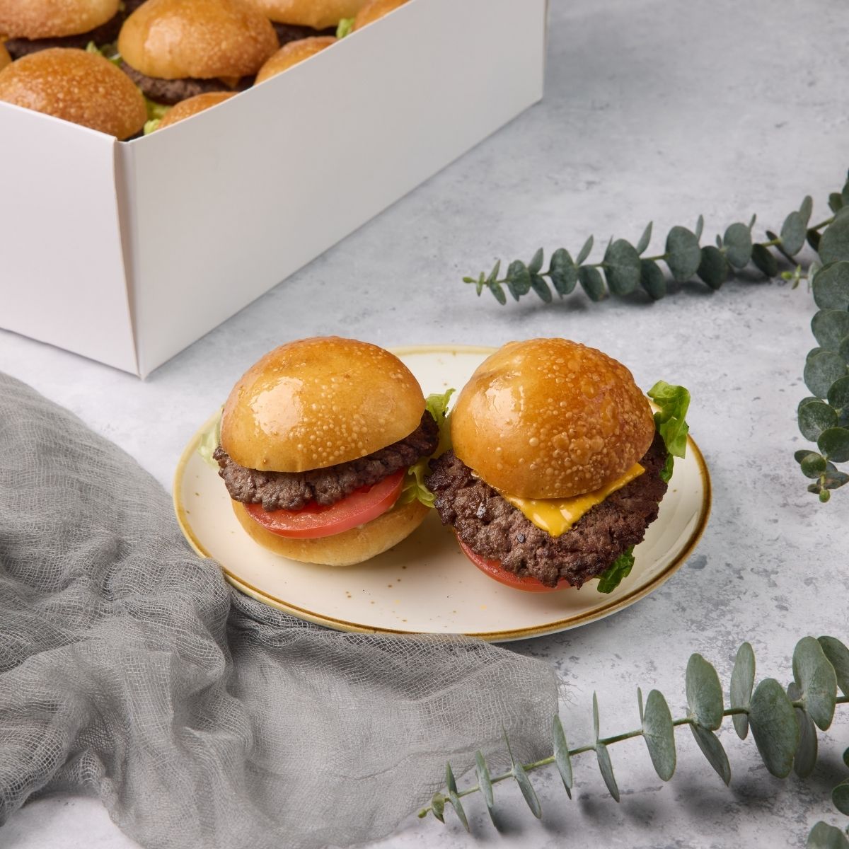 A crowd-favourite selection of mini beef sliders featuring juicy beef patties served in soft brioche buns. Perfect for meetings, office lunches, and sharing platters.